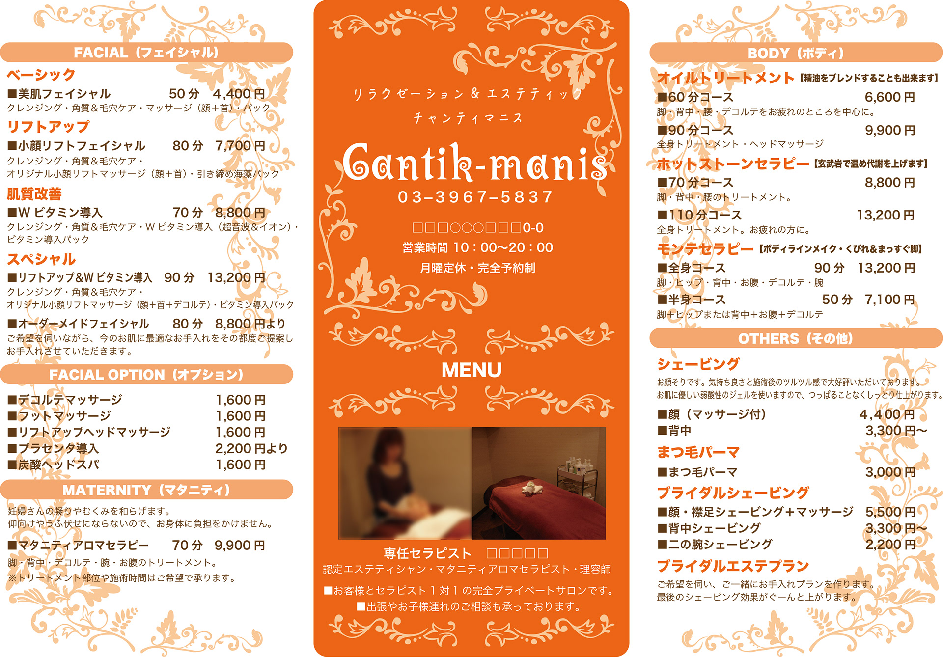 エステティックサロン|ロゴブラッシュアップとスタッフTシャツ・レーフレット・名刺デザイン